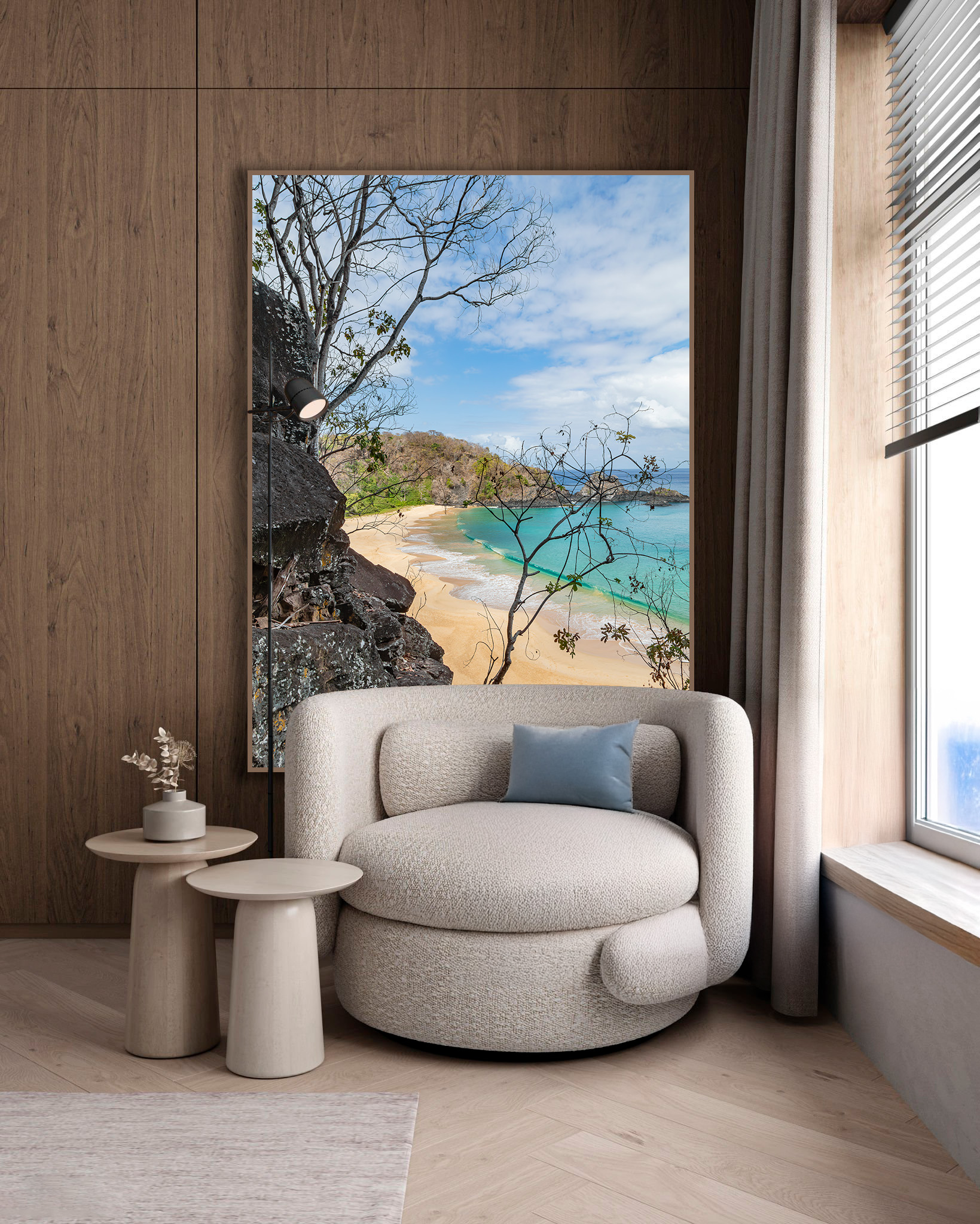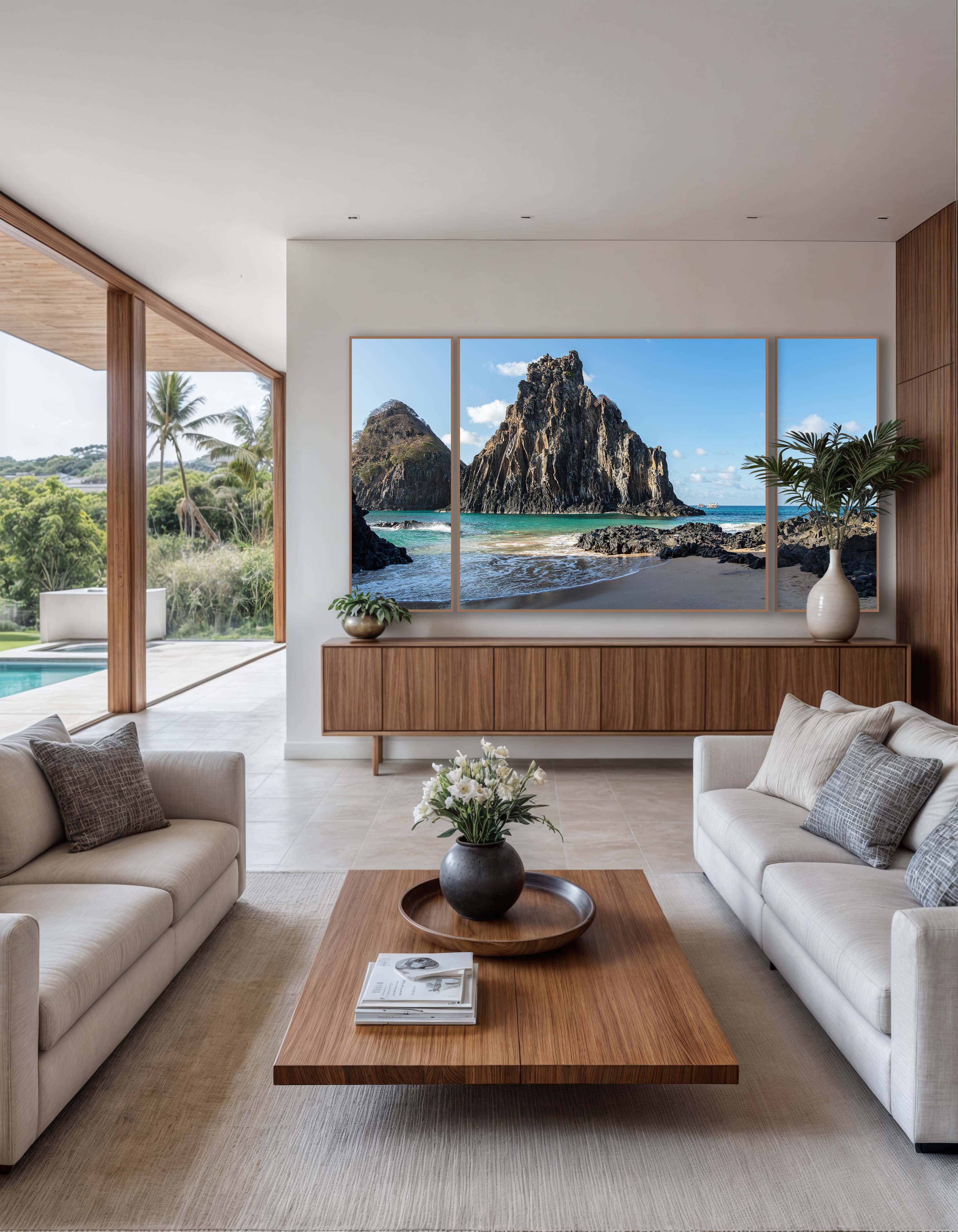 Quadros em grandes formatos oferecem uma experiência imersiva única, transformando espaços e criando uma sensação de bem-estar. Ao personalizá-los para se adequarem perfeitamente ao seu ambiente, eles proporcionam a ilusão de uma janela para uma paisagem relaxante, convidando-o a se perder na cena retratada. Essas peças não não apenas adicionam um toque de elegância e sofisticação ao ambiente, mas também criam um ponto focal impactante que cativa a atenção e eleva o astral do espaço.