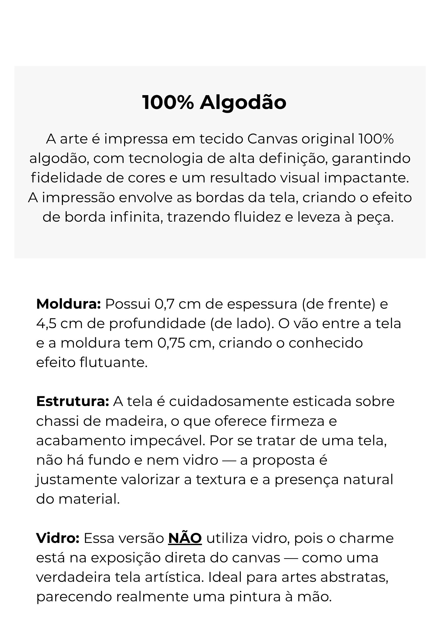 Obs.: Tamanhos 90x120; 100x150 e 150x200cm são disponíveis apenas em acabamento CANVAS.
